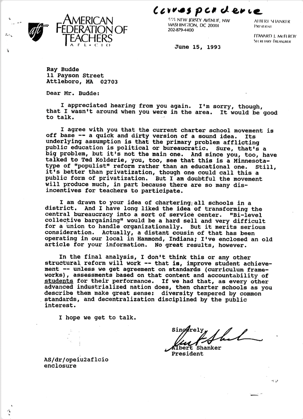 EMOs were one reason why AFT President Al Shanker abandoned his support of charter schools. Per Shanker: “Vouchers, charter schools, for-profit management schemes are all quick fixes that won’t fix anything.”