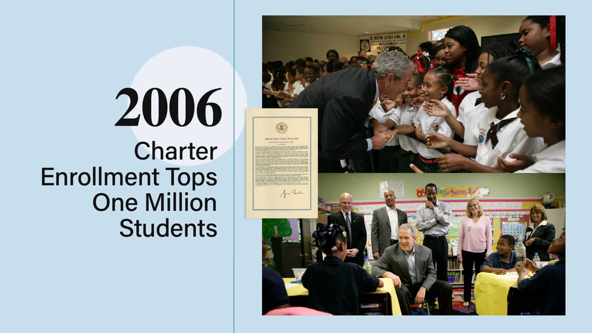 Just fifteen years after the nation’s first charter schools law was passed, total charter enrollment surpassed 1 million students—or about 2% of national public school enrollment—in 3,600 schools across 40 states. This milestone demonstrated both the demand from families and the growing capacity of the charter community to replicate school models that achieved success for students, which demonstrated that innovation could be scaled.